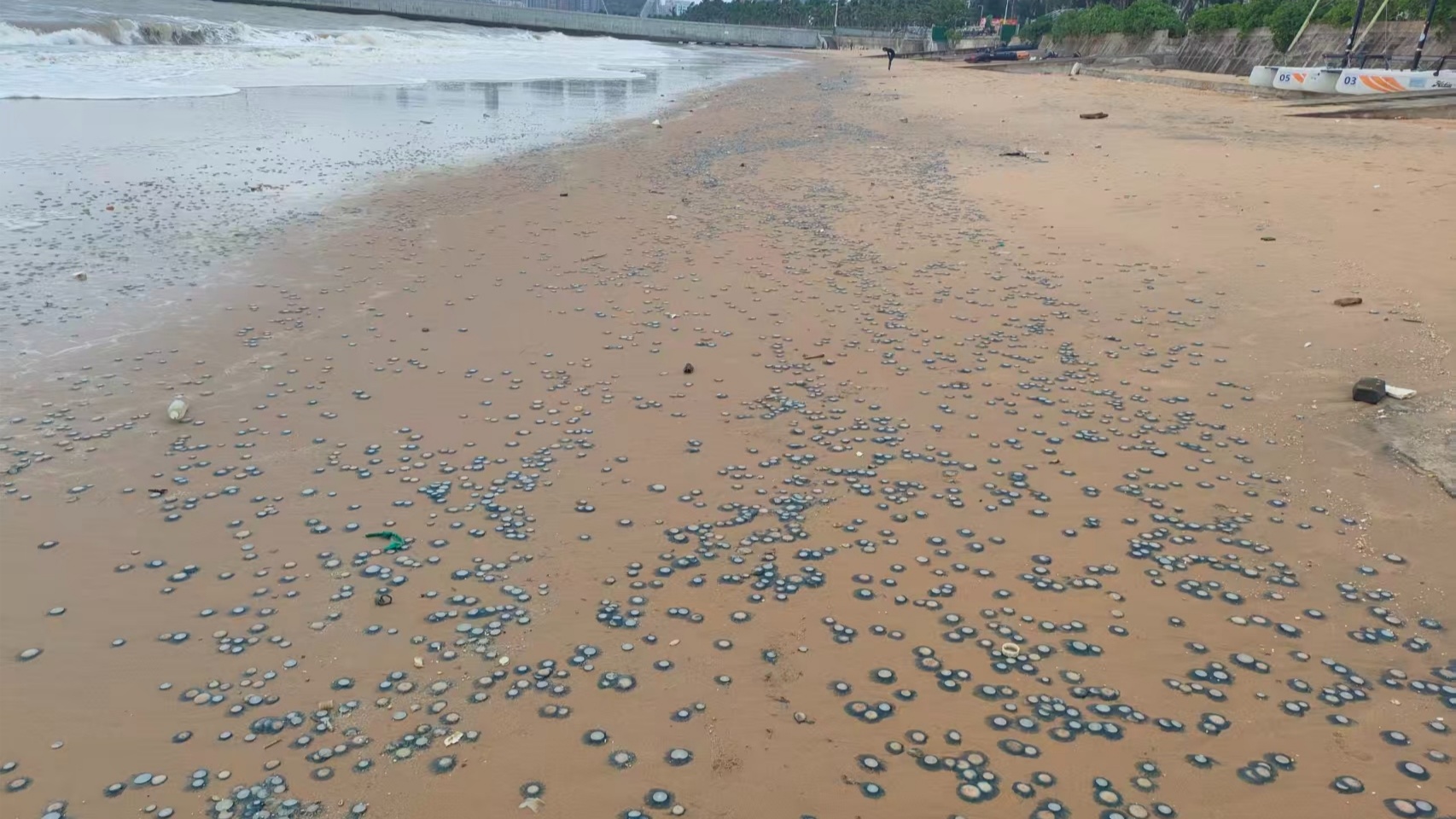 ?谖骱0冻霈F大量銀幣水母 專家:有毒,應避免主動觸碰!